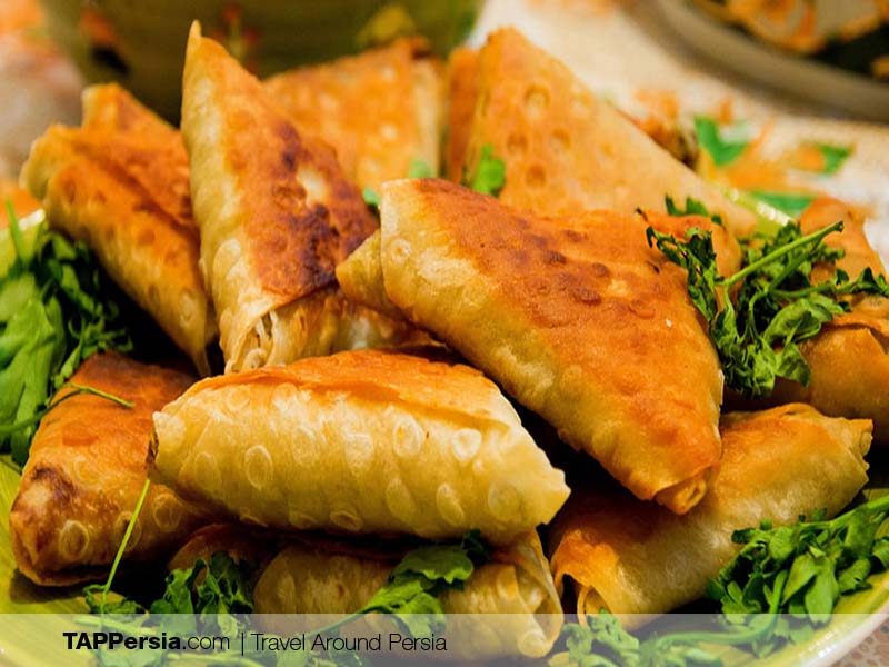 Samboseh or Samosa is another Iranian street food originally from the south. A mixture of cooked potato, onion, meat or chicken, different cooked veggies with spices, is wrapped with Lavash bread in a triangle shape and then deep-dried. The mixture can be varied. Some are completely vegetarian with no meat or chicken. A nice choice just to fill your stomach like an hour or two before having a meal.