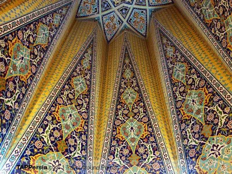 Enter the tomb in order to enjoy Iranian art of tiling. Indeed, you are visiting one of the best samples of contemporary art of tiling, just look at the ceiling and enjoy it. It is time to enjoy quatrains of Baba Tahir which are written on the tomb walls. Poems as well as patterns have made the tomb a lovely place.