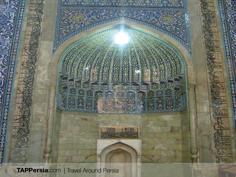 Goharshad Mosque is one of the most visited mosques each day, not only because of its awesome art but because of its location, in Imam Reza Shrine outlining. The name of Goharshad is written by tiles in two spots. The first is on top of the silver door opening to the “Dâr-alsiyâdeh” portico Leading to Imam Reza Shrine. The other on the Maghsure Iwân’s inscription.