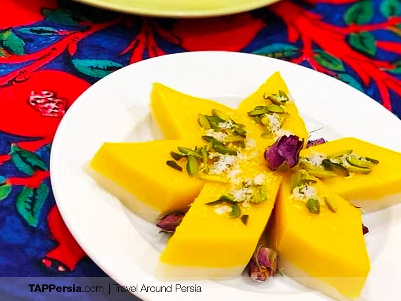 In Shiraz, the city of great poets and gardens, located in south-central Iran, the Ramadan fast is often broken with a cup of warm water, dates, egg, tea, bread, honey and cheese, and a piece of Tar Halva. Tar Halva is a diamond-shape confectionery with the delightful smell of saffron. You can close your eyes, smell the fresh Shiraz saffron and enjoy the taste of sweetness coming along with taste of saffron and ground rice with its gelish style.